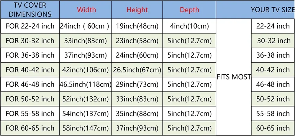 As the brand and model of the TV are different, there is a slight difference in size. Therefore, it is recommended that you measure the size of the TV and then select it by the size inside the size chart. If you are still unable to determine the size through the size chart, you can contact us via the station letter and we will ensure that you are replied within 24 hours. Thank you for your understanding!